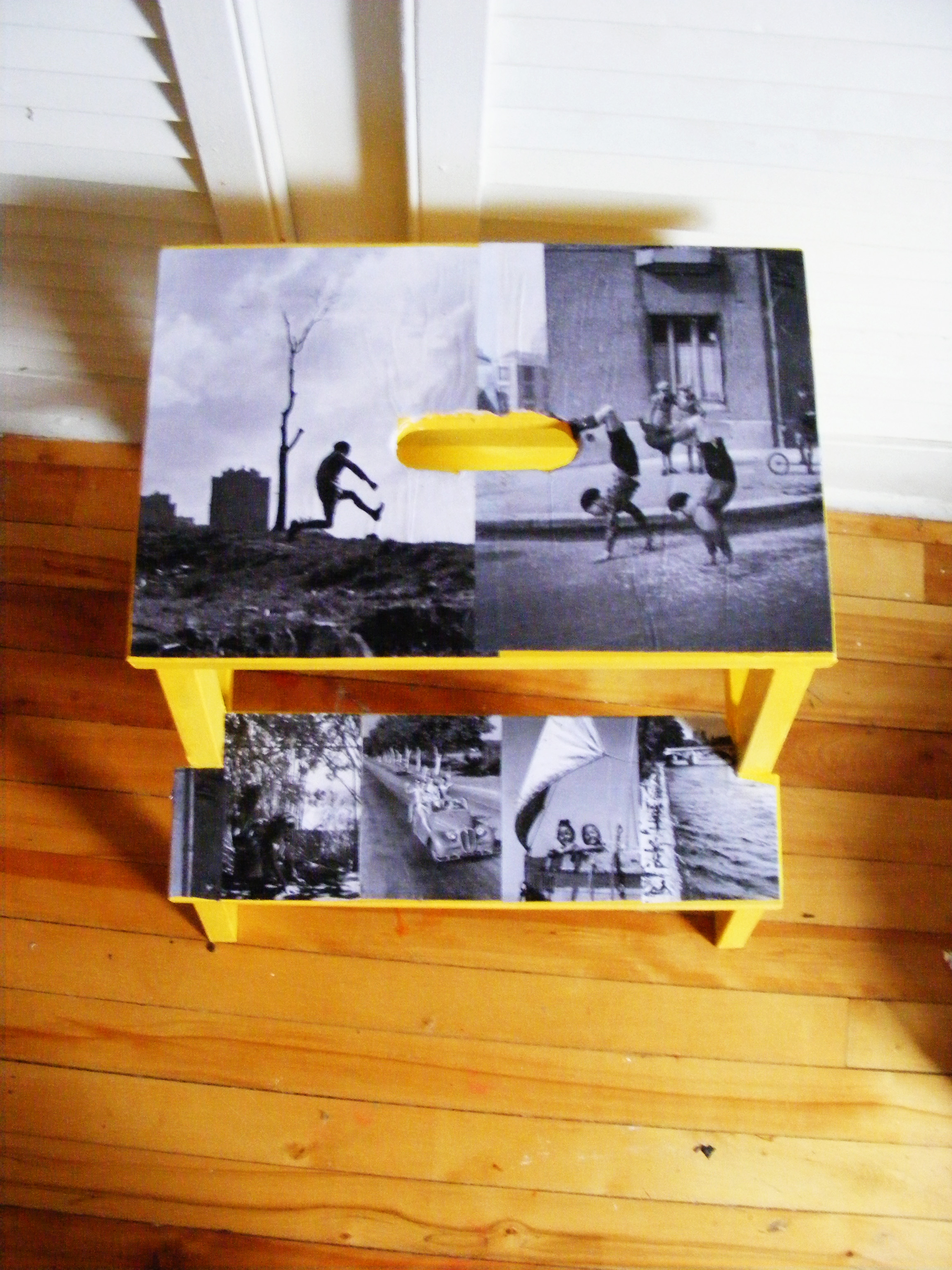 It took me a while to find what I’d do with this Bekvam stool. It’s going to be used mainly in the living room but I need to be able to move it around and still have it fit well with the decor elsewhere. Yellow paint and Robert Doisneau photos make for a winning combination in that sense.