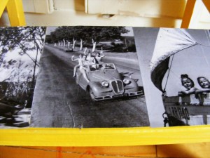 Start by painting the whole surface (except the top and the lower step) in a coat of white. Let it dry. Whilst that is drying, if you haven’t done so already, go choose the pictures you’ll be using for the steps. I printed out a bunch of summer themed photos by French photographer Robert Doisneau. Other suggestions of interesting black and white photographers: Henri-Cartier Bresson, Eugène Atget, Willy Ronis, Jacques-Henri Lartigue.
