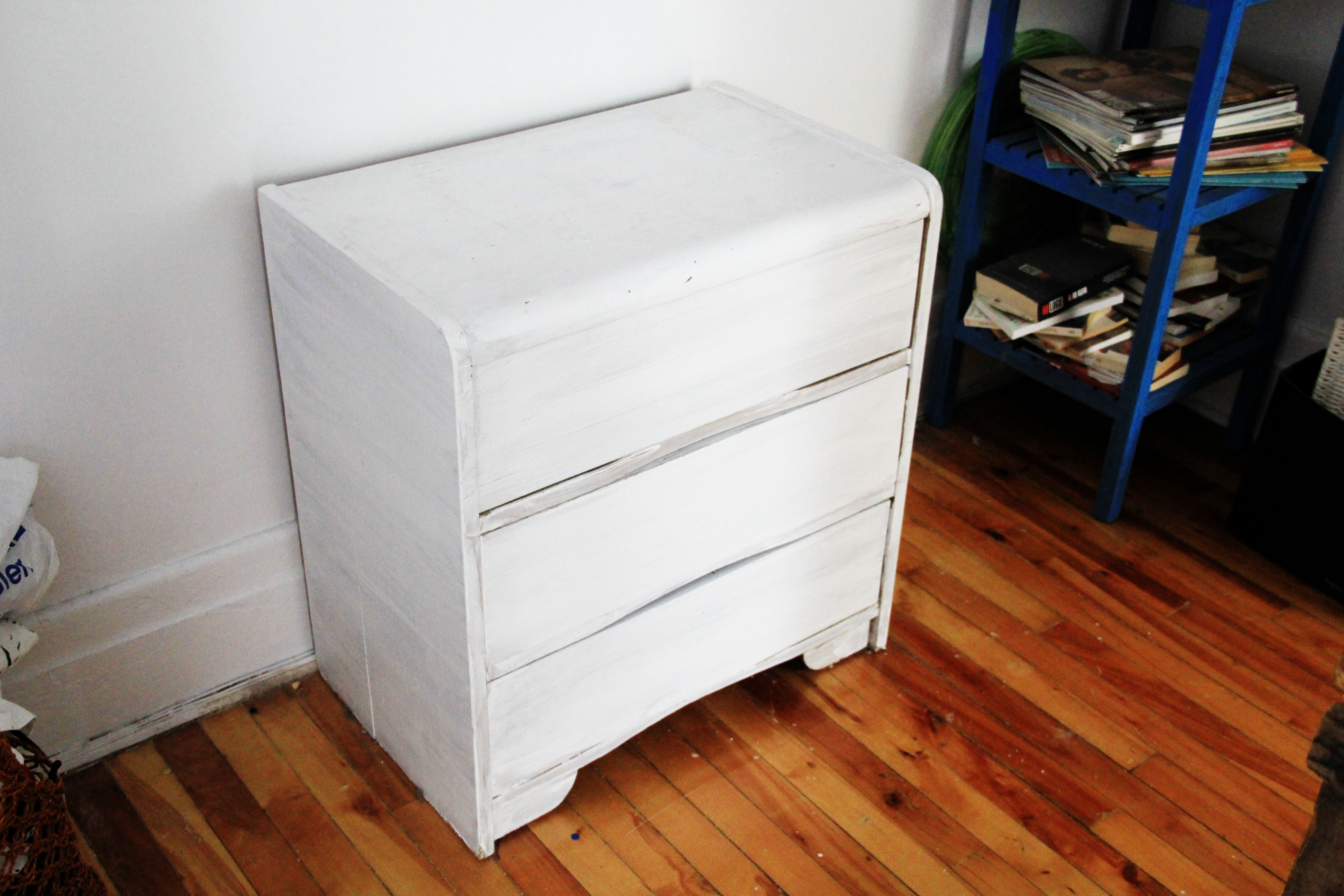 For months, I left it as is (it was a neutral brown shade). Then I put a few coats of white, thinking it would fit nicely into my decor. Alas, I was still not satisfied, finding that it lacked character and looked unfinished.
