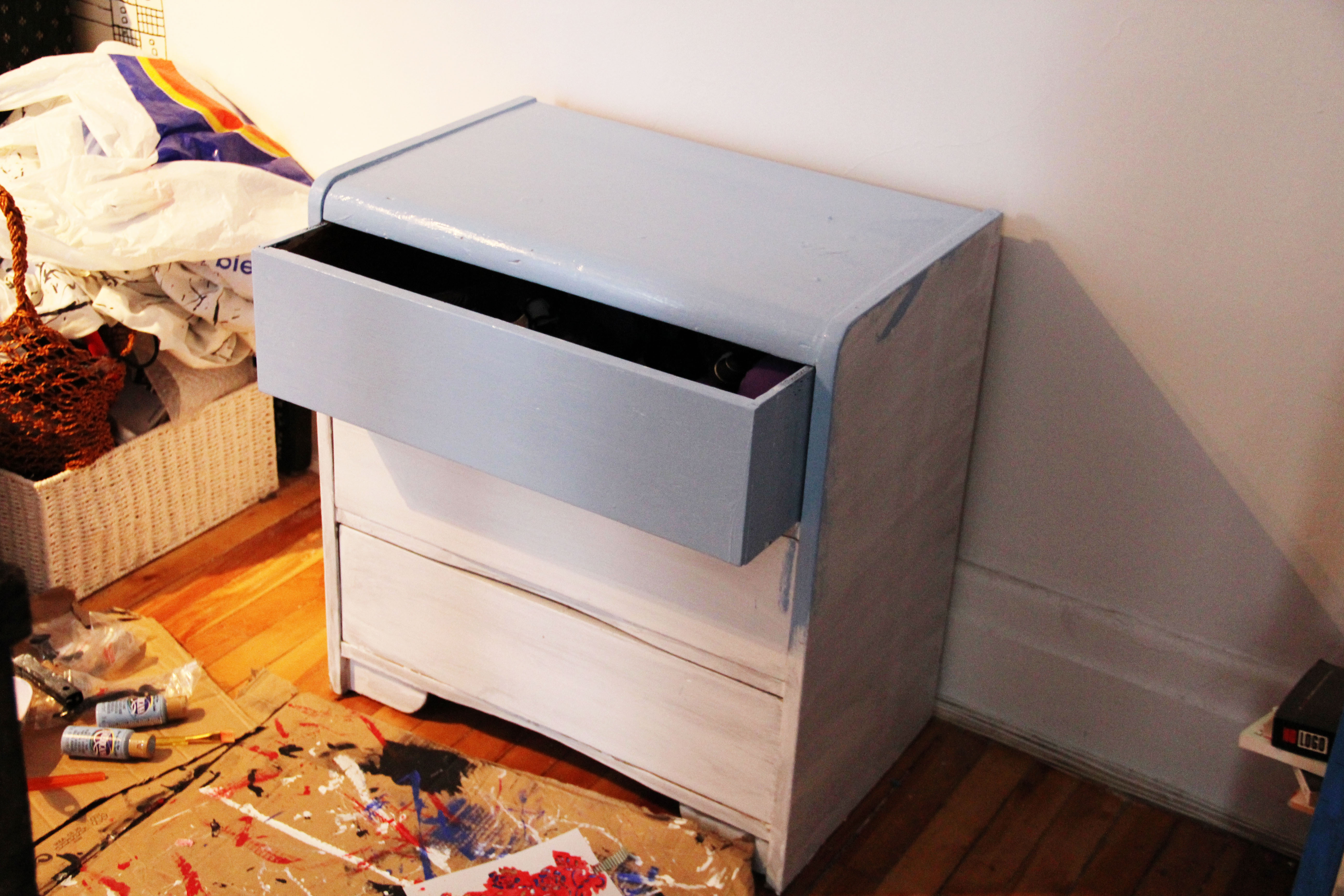 I haven’t been a fan of baby blue since I passed the age of 12 and stopped liking boy bands and Kangol hats, so I was quite surprised that I liked it in this context. Figuring that I had nothing to lose that another coat of paint couldn’t fix, I went out to buy a few bottles of acrylic paint, along with some easy to install handles.