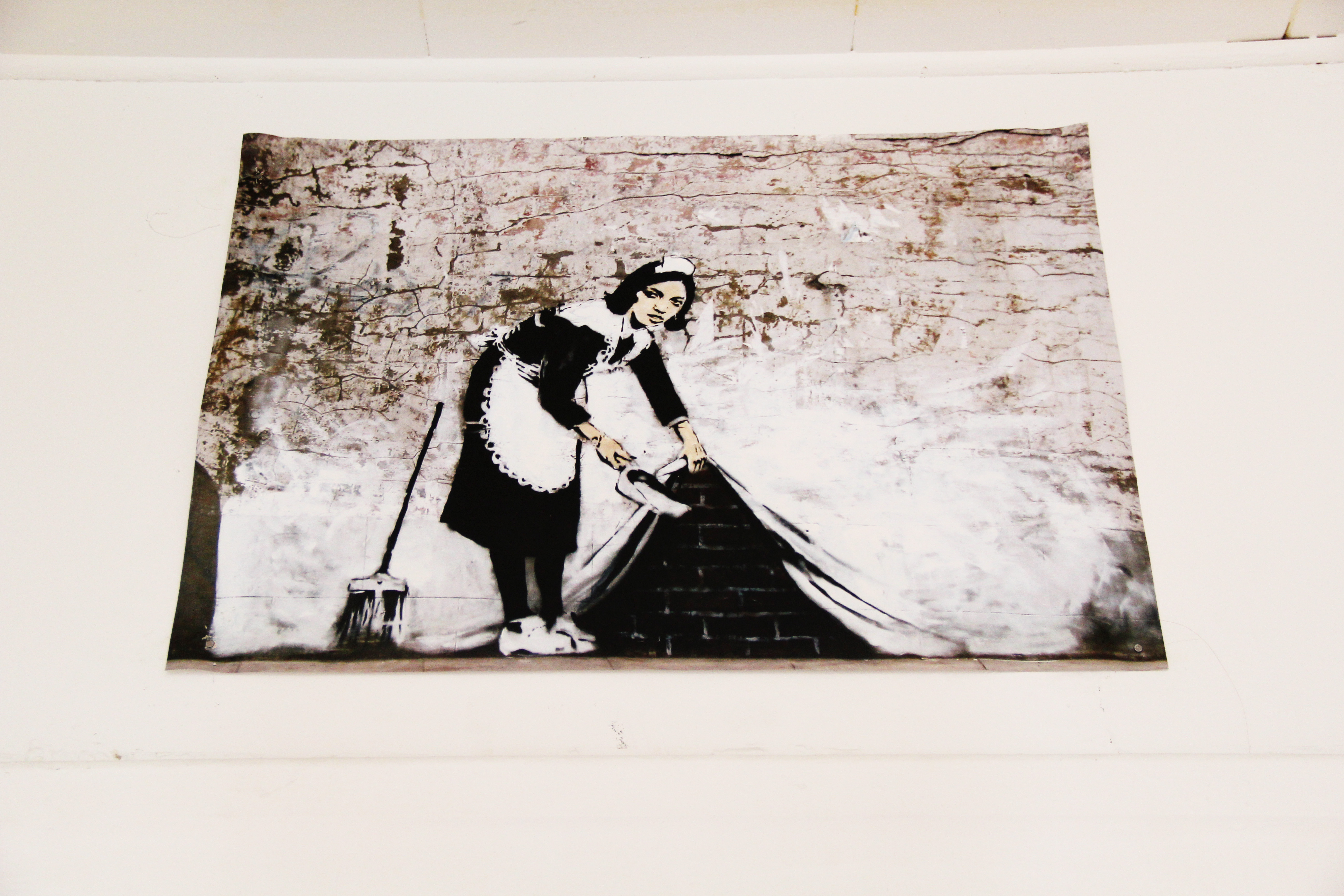 Maid sweeping by Banksy. Poster found at Montréal Images.